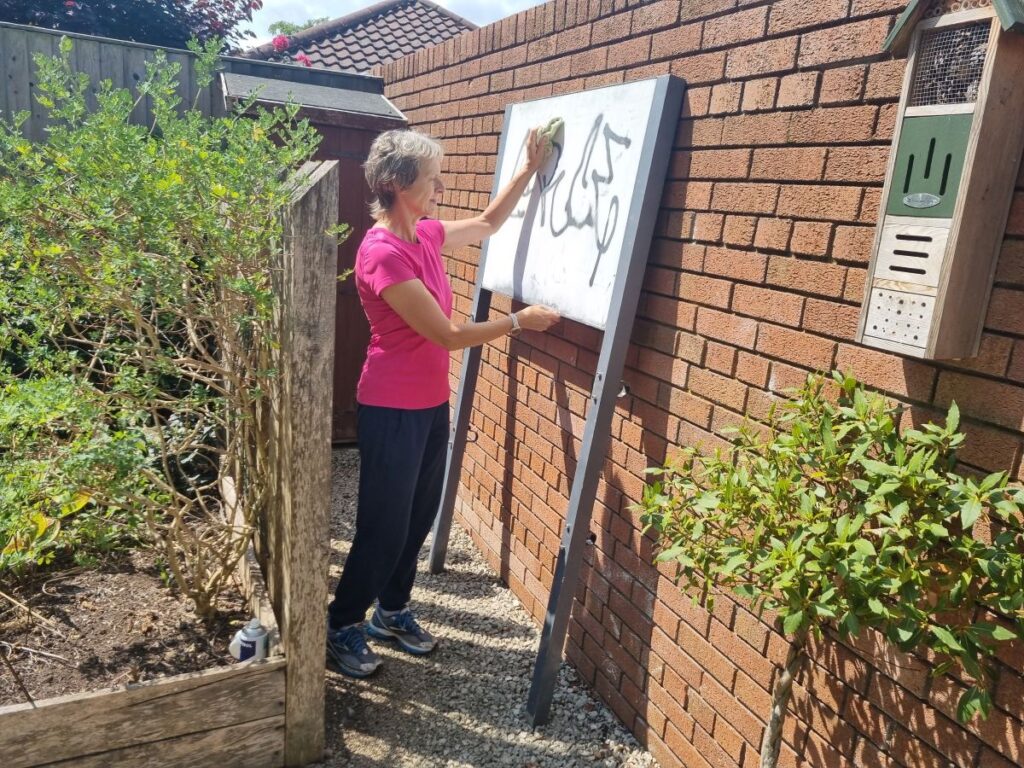 David and Laura Demery – for retrieving the board (an epic march along the Chocolate Path to the amusement of several passers-by), attempting to remove the graffiti from the back of the board, and then repainting over the smeary mess they had accidently created.